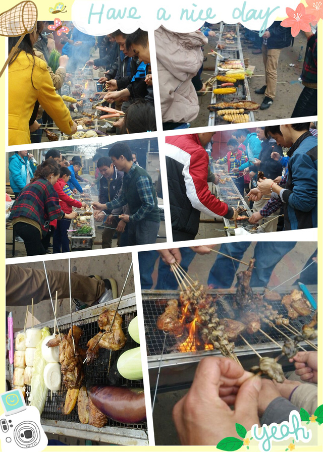 大家爬完山后,就立馬回到公司,不大一會兒,整個廠區(qū)內(nèi)炊煙裊裊,此時我們都是饑腸轆轆,迫不及待地圍在燒烤架,把早已想吃的食物放到架子上,霎時空氣中充滿了肉的香味。