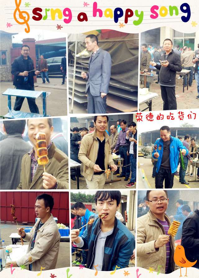 廠區(qū)內(nèi)搞燒烤,估計只有榮德公司才能做到,從這個活動中,我才發(fā)現(xiàn)榮德真是人才濟(jì)濟(jì)。燒烤架是生產(chǎn)部的同志親手打造,食物、調(diào)料、飲料都是榮德人親自采購。肉的腌制,蔬菜的清洗等工作都是我們親力親為的,平時不顯山露水的人,搖身一變就成大廚了,刀工出神入化,姜蒜切的細(xì)碎,土豆片薄而均勻,韭菜串的整整齊齊...大家都是勤勞的小蜜蜂啊。