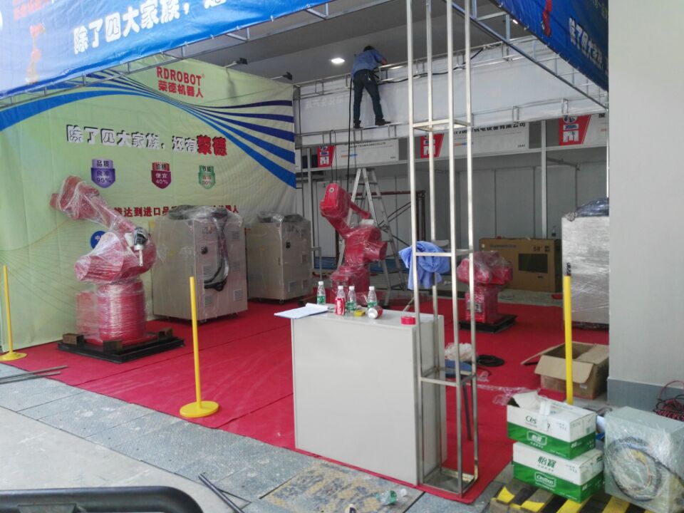 為了展示我們的機(jī)器人,給大家留個(gè)好印象,從決定參加展會(huì)后,就進(jìn)入積極準(zhǔn)備階段,重新設(shè)計(jì)的宣傳冊(cè)等相關(guān)資料。就在昨天,我們的同事不辭辛苦,頂著40多度高溫,前去搭建會(huì)場(chǎng),現(xiàn)會(huì)場(chǎng)所有東西到到位,噴涂機(jī)器人設(shè)備也已安裝好了,就等您的到來(lái)!
