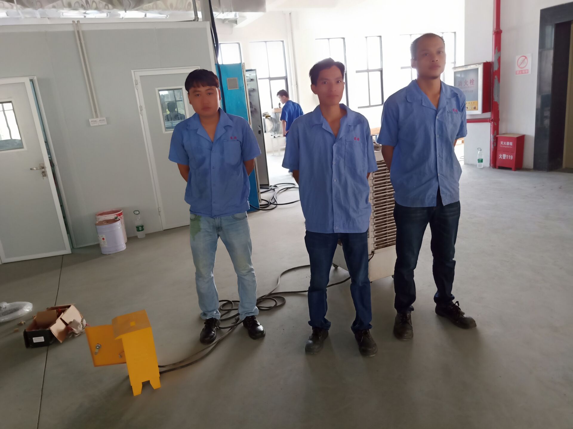 高溫下的不銹鋼表面就像是燒熱的烤板,碰在上面,就是強烈的燒灼感,在通風(fēng)條件差的室內(nèi)又悶又熱,汗水浸濕了衣衫,手上的工作卻仍在繼續(xù),因為,按時交貨、如期完工,是我們的承諾。在噴涂生產(chǎn)線安裝項目的同事們個個都揮灑著汗水,將勤勞與熱情都投入到工作中!臉上流淌的汗珠,衣服上泛著的鹽花,是他們經(jīng)受“烤”驗的特有印記。