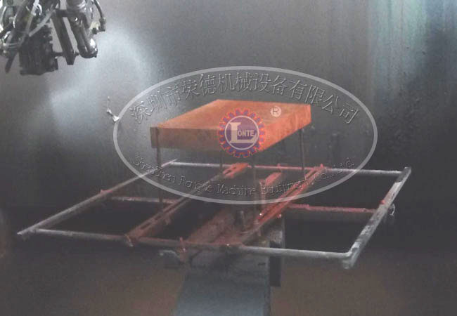 人工上料→產(chǎn)品滑入噴涂區(qū)→噴槍開油→配合X1、Y2、Z3、W4、T5軸運動。