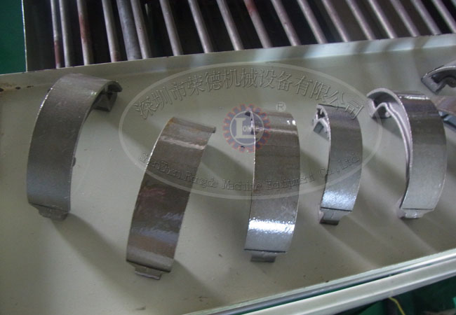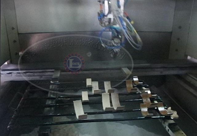 剎車片自動噴涂設(shè)備由自動噴涂部分、粉末固化部分、冷卻部分等組成,該設(shè)備的特點是節(jié)能效率高,使用雙槍30度噴涂,死角少,遠紅外粉末固化,上粉好,噴涂快,固化快,冷卻也快。