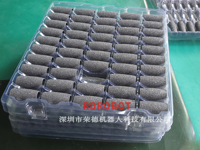 產(chǎn)品總述:將Roller head 磨頭素材表面自動打毛后,自動噴AB膠自動噴砂子粘在上面,使素材表面形成規(guī)定范圍內(nèi)的粗糙度,通過機械手自動抓取到烘干線上,自動烘干永久將砂子牢牢粘在上面,砂子在受到作用力下不會掉落。一個去角質(zhì)的Roller head磨頭初步成型。